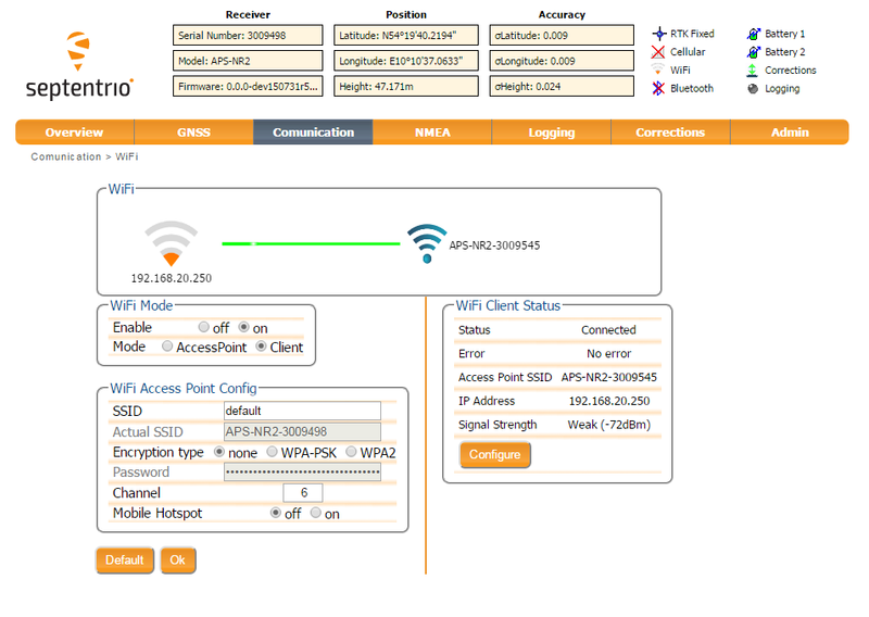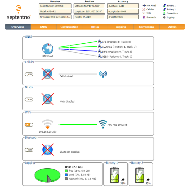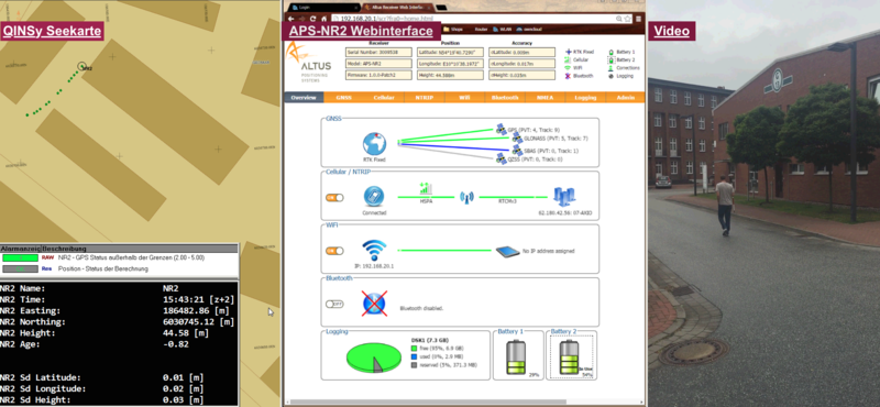 Mit der neuesten Firmware besteht die Möglichkeit, die ALTUS NR2 als WiFi AccessPoint zu nutzen oder die ALTUS NR2 in ein bestehendes WiFi-Netz einzubinden. So ist gewährleistet, dass auch mehrere Einheiten gleichzeitig von der QINSy genutzt werden können. Korrekturdaten können via internem GPRS-Modem, bestehender Internetverbindung oder auch über das WiFi verarbeitet werden.